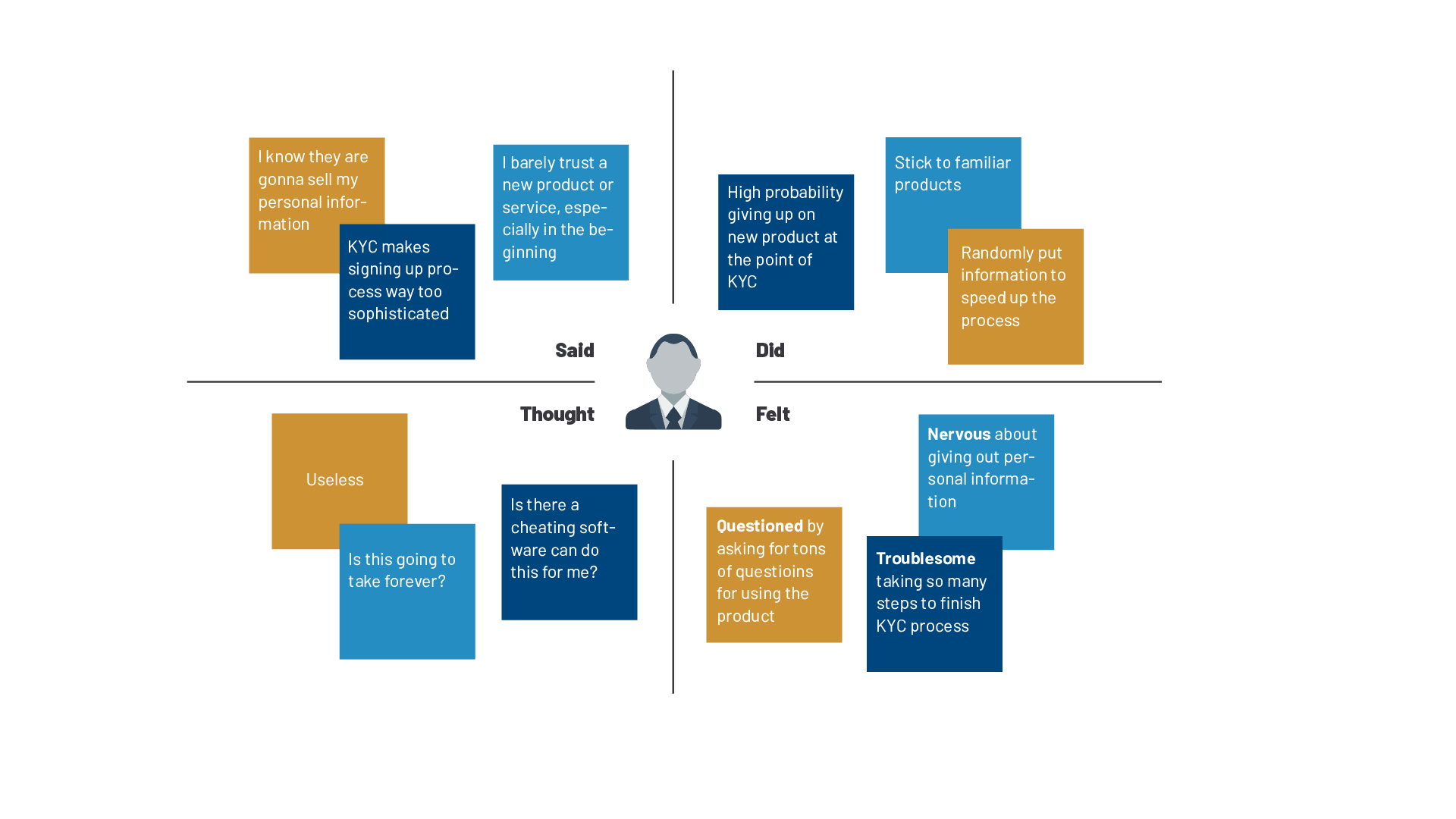 People’s attitudes toward KYC tend to be a bit negative. They worry about their personal information leaking so that they don’t trust new products in the beginning. They think the process is very troublesome, so they give up signing up an account for this new product halfway or randomly put the information to speed up the process. All that will hurt the reliability of the data, which damages the business, from the company’s perspective.