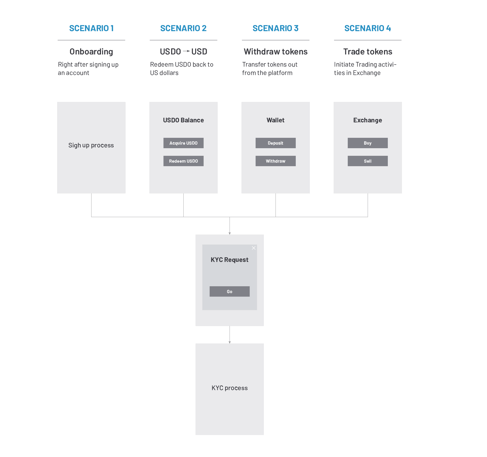 Therefore, I decided to welcome new users to explore the product first and verify their identity when needed. Then, there are four scenarios that KYC is required: