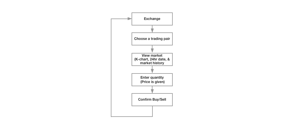 The purpose of investors trading cryptocurrencies is similar to trading stocks in the capital market, and the dynamics are identical too. To empathize with users better, I turned myself into a user trying out similar products. During this exploration, I paid attention to my feelings, where I believe design decisions can potentially influence users’ trading decision-making. The place an order process is the same as the shopping process: what I want to buy, what the price is, how many I want to buy, and the total cost, and confirm payment. Then I designed the order placing process - Choose a trading pair, view price, enter quantity, and confirm buy/sell.